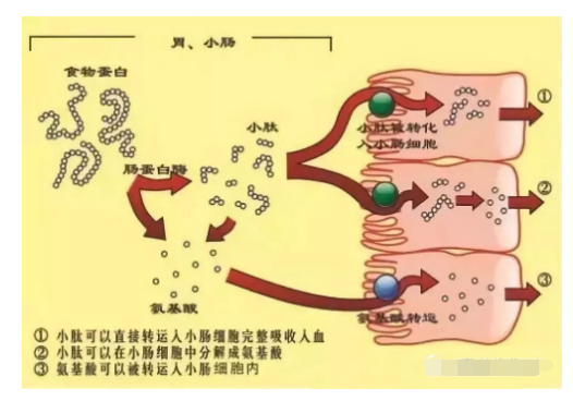 肽在人體的營養(yǎng)吸收及安全性優(yōu)于蛋白質(zhì)。蛋白質(zhì)是人體所需的八大營養(yǎng)素之一,同樣也是特殊醫(yī)用配方食品中重要的營養(yǎng)源。過去人們一直認為人體吸收的蛋白質(zhì)主要是以氨基酸的形式吸收的,近些年人們發(fā)現(xiàn)并不像傳統(tǒng)認為的那樣只能以氨基酸的形式吸收,而是能以小分子肽的形式直接吸收。目前亦已證實,機體對寡肽和游離氨基酸有不同的吸收體系。肽的滲透壓小于氨基酸,且在腸道細胞中存在許多獨立的肽酶反應(yīng),故機體對寡肽的吸收和代謝速度快于游離氨基酸。因此,各種動、植物蛋白多肽組件的配合比蛋白質(zhì)及氨基酸組合更具營養(yǎng)全面性和吸收安全性。從而能夠更好的滿足進食受限、消化吸收障礙及術(shù)后人員等人群的每日蛋白來源的營養(yǎng)需要。