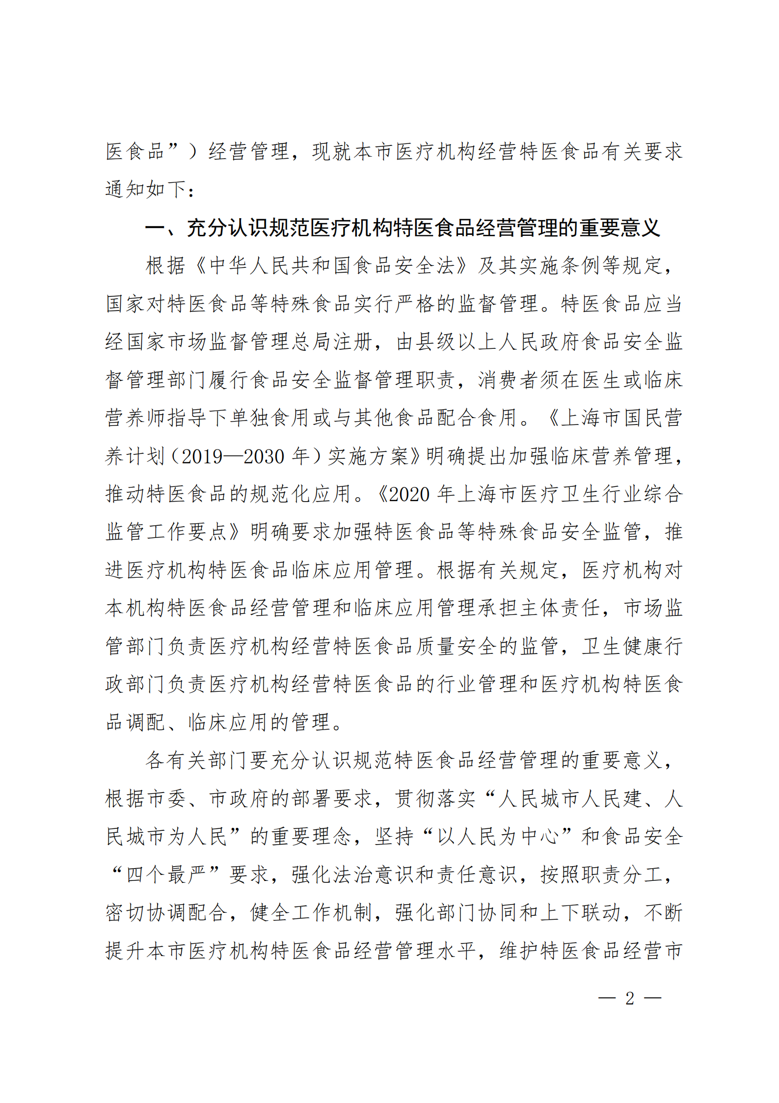 為貫徹落實《上海市貫徹〈中共中央 國務院關于深化改革加強食品安全工作的意見〉的實施方案》《上海市國民營養(yǎng)計劃(2019—2030年)實施方案》精神,以及《上海市人民政府辦公廳關于改革完善醫(yī)療衛(wèi)生行業(yè)綜合監(jiān)管制度的實施意見》等要求,進一步規(guī)范本市醫(yī)療機構特殊醫(yī)學用途配方食品(以下簡稱“特醫(yī)食品”)經營管理,現(xiàn)就本市醫(yī)療機構經營特醫(yī)食品有關要求通知如下: