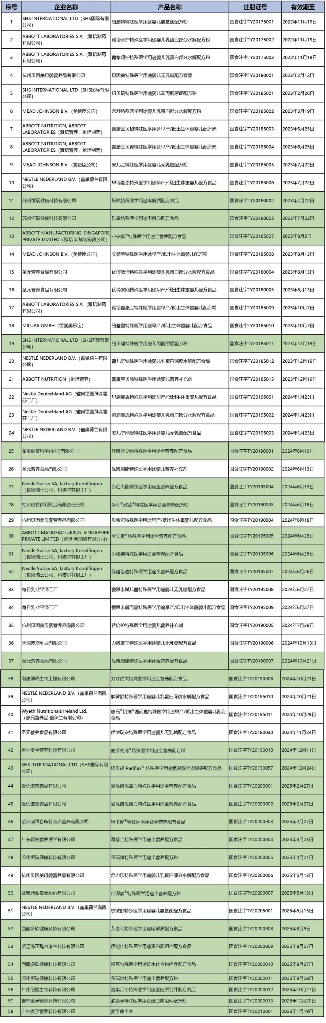 <綠色標(biāo)記為適用1歲以上人群特醫(yī)食品,共計(jì)27個(gè)>