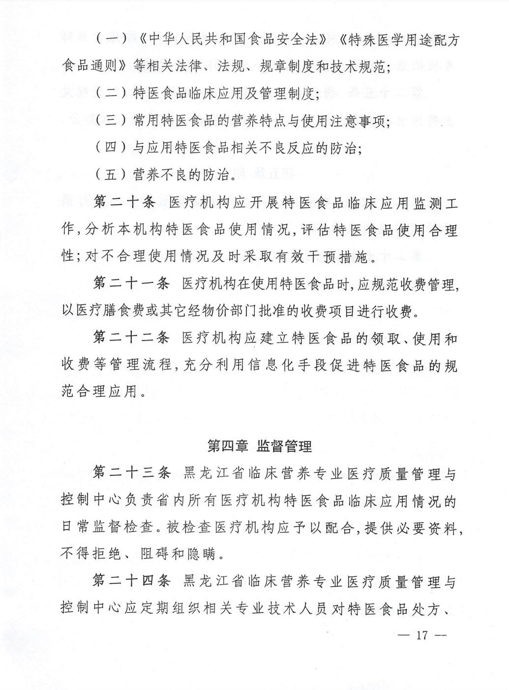 關(guān)于印發(fā)《黑龍江省加強(qiáng)醫(yī)療機(jī)構(gòu)臨床營養(yǎng)工作促進(jìn)特殊醫(yī)學(xué)用途配方食品合理使用的通知》