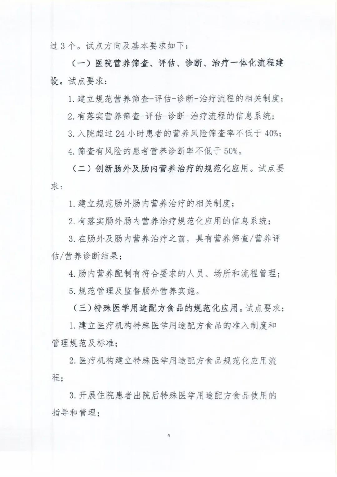 其中進一步明確規(guī)定醫(yī)療機構(gòu)臨床營養(yǎng)科試點單位范圍和遴選單位要求,通過臨床營養(yǎng)科建設(shè)試點工作,進行醫(yī)院營養(yǎng)篩查、評估、診斷、治療一體化流程建設(shè),完善臨床營養(yǎng)科室建設(shè)相關(guān)管理制度,建設(shè)一批示范單位,發(fā)揮示范引領(lǐng)作用,帶動各級醫(yī)療機構(gòu)臨床營養(yǎng)科建設(shè)發(fā)展。