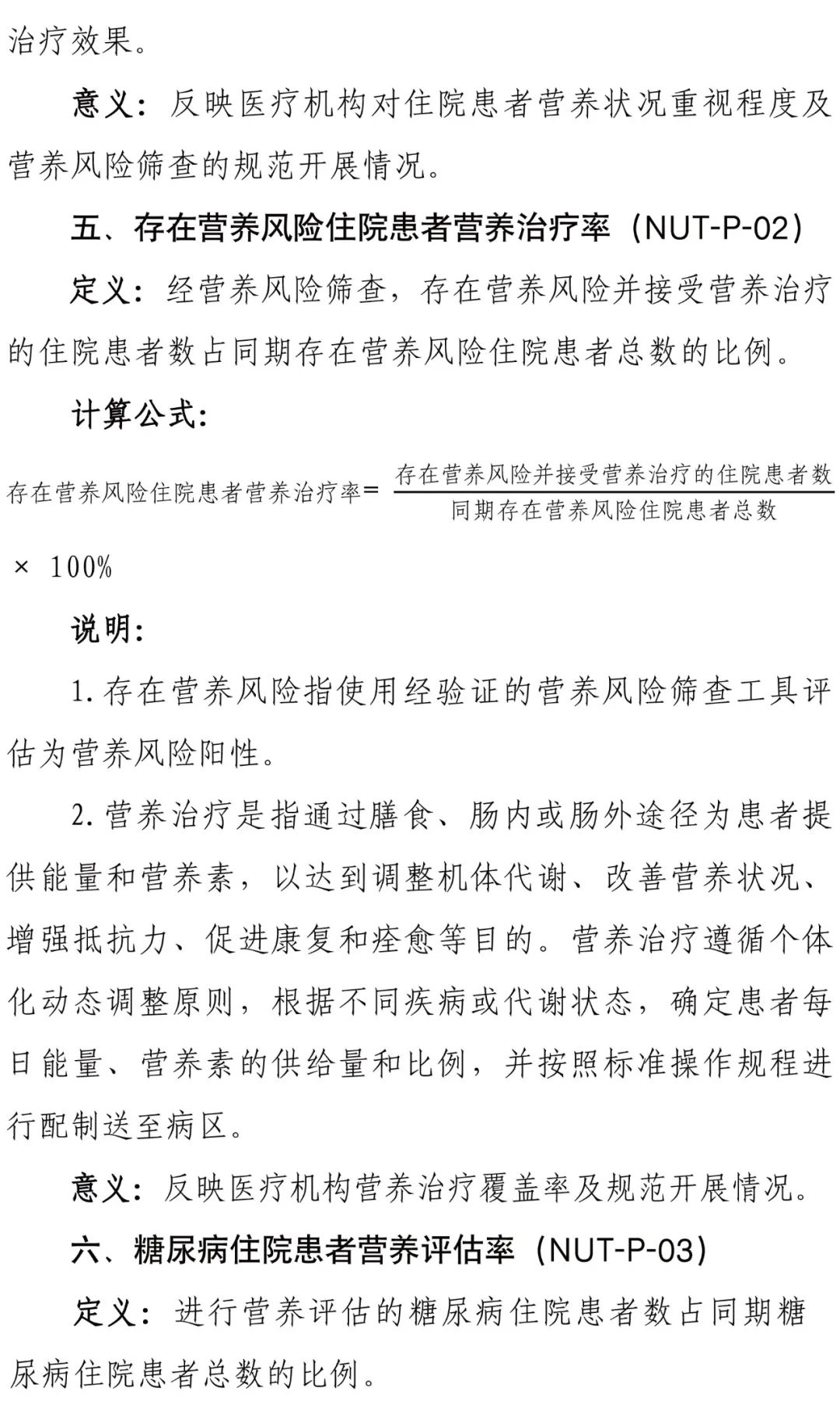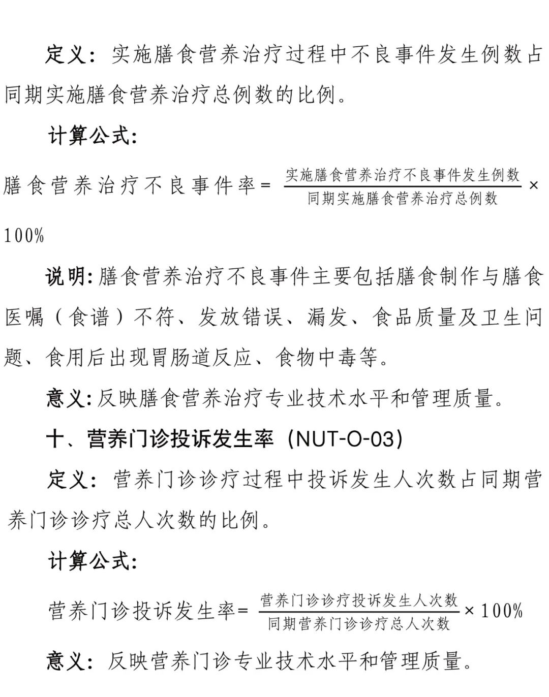 為進一步加強醫(yī)療質(zhì)量管理,規(guī)范臨床診療行為,促進醫(yī)療服務的標準化、同質(zhì)化,國家衛(wèi)健委組織制定了臨床營養(yǎng)專業(yè)醫(yī)療質(zhì)量控制指標,要求各級各類醫(yī)療機構(gòu)要充分利用相關醫(yī)療質(zhì)量控制指標開展質(zhì)量管理工作,不斷提升醫(yī)療質(zhì)量管理的科學化和精細化水平。