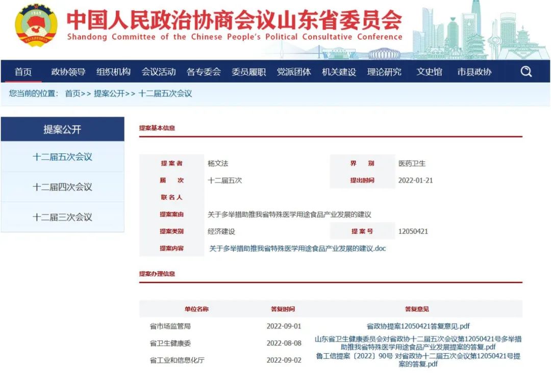 近日,山東省政協(xié)委員會(huì)發(fā)布了對(duì)省十二屆五次會(huì)議第12050421號(hào)提案《關(guān)于多舉措助推我省特殊醫(yī)學(xué)用途食品產(chǎn)業(yè)發(fā)展的建議》的會(huì)辦意見(jiàn)。