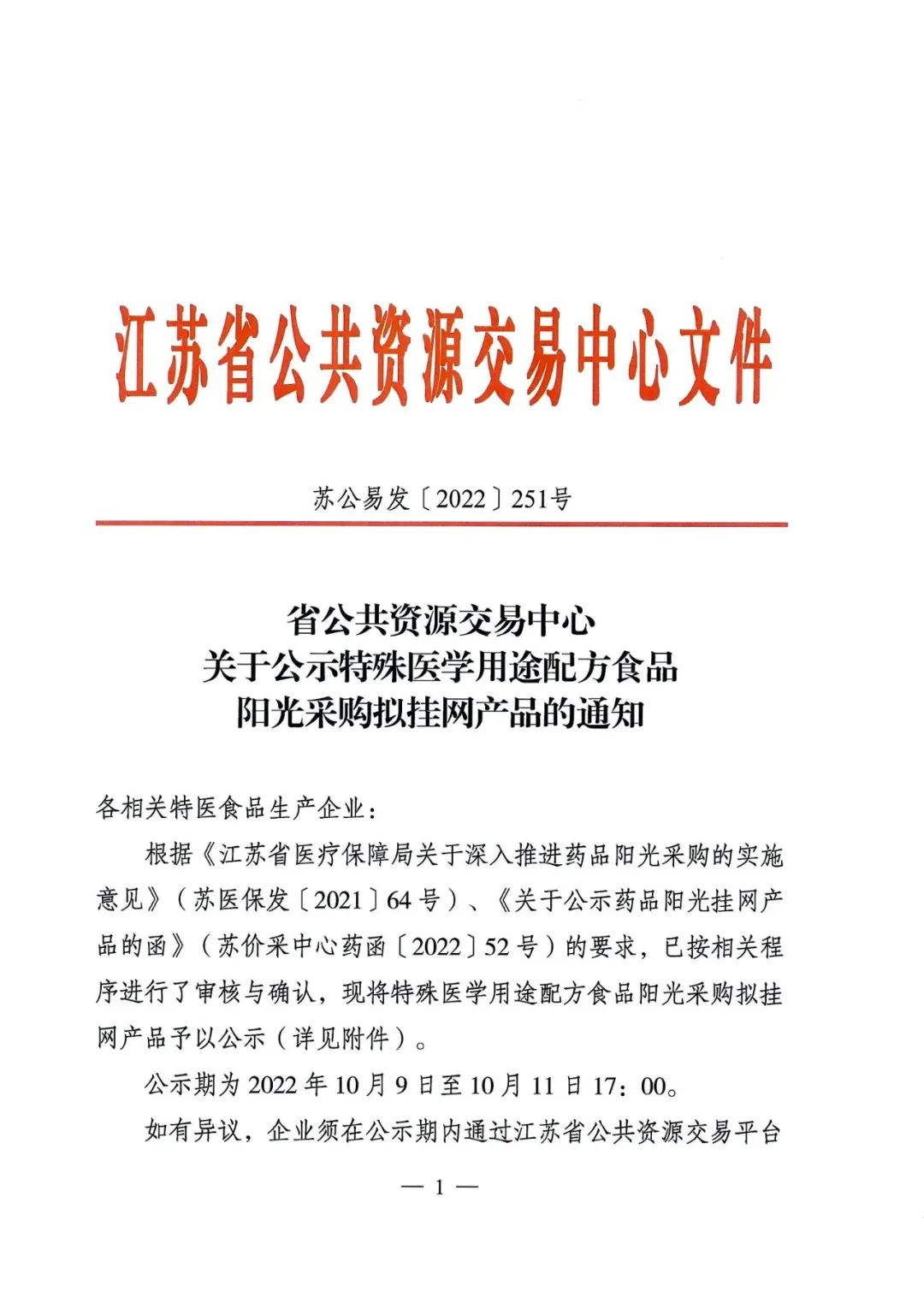 10月09日,江蘇省公共資源交易中心發(fā)布關于公示特殊醫(yī)學用途配方食品陽光采購擬掛網產品的通知,其中涉及到特醫(yī)食品冬澤定。