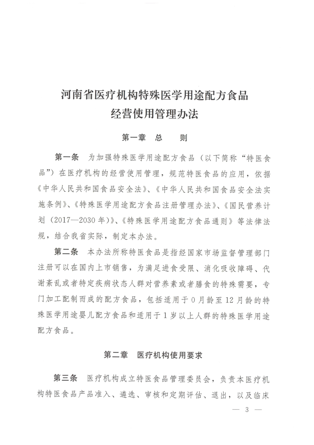 為加強(qiáng)特醫(yī)食品在醫(yī)療機(jī)構(gòu)的經(jīng)營(yíng)使用管理,2022年8月,河南省衛(wèi)健委、河南省市場(chǎng)監(jiān)管局、河南省醫(yī)保局聯(lián)合制定 《醫(yī)療機(jī)構(gòu)特殊醫(yī)學(xué)用途配方食品經(jīng)營(yíng)使用管理辦法》,要求河南省直醫(yī)療機(jī)構(gòu)遵照?qǐng)?zhí)行。辦法中要求: