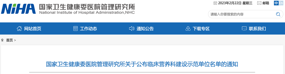 網(wǎng)站首頁 >> 國家衛(wèi)生健康委醫(yī)院管理研究所公布30家臨床營養(yǎng)科建設示范單位名單