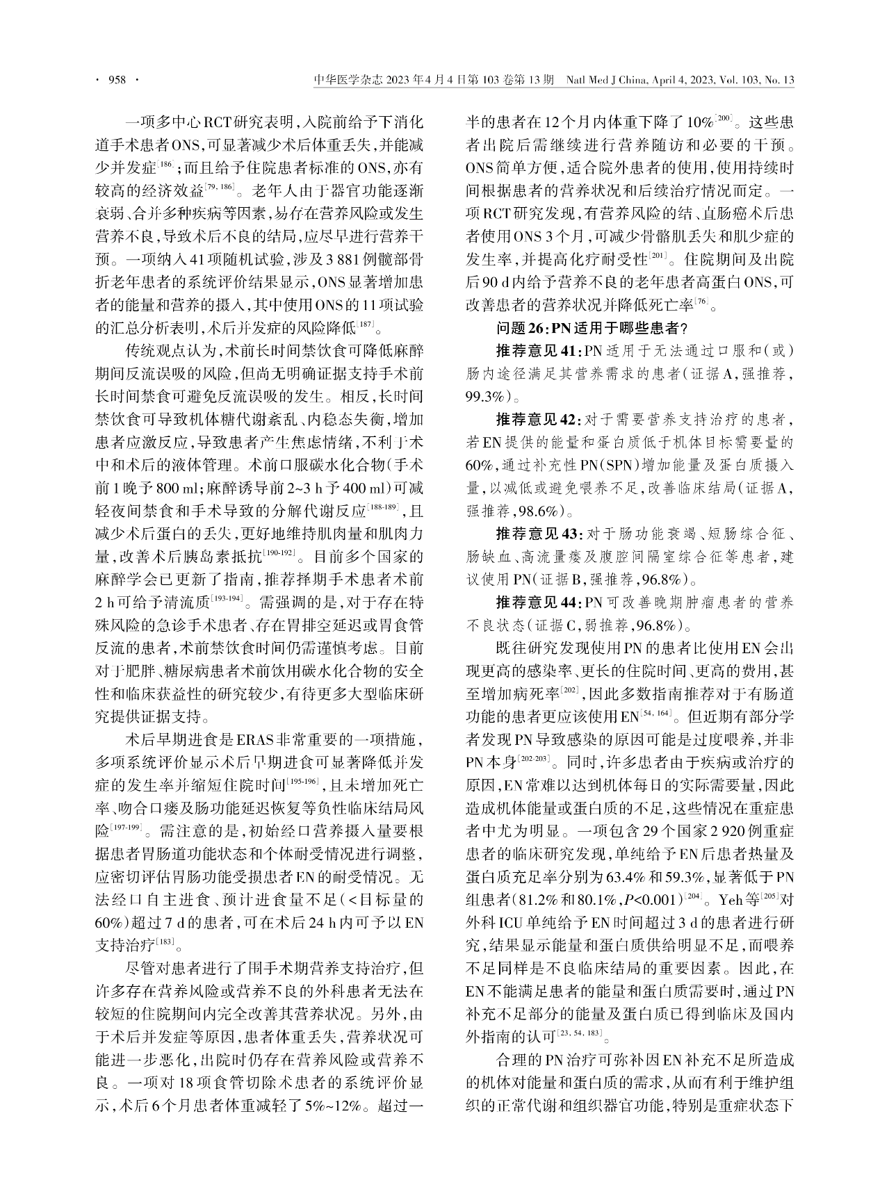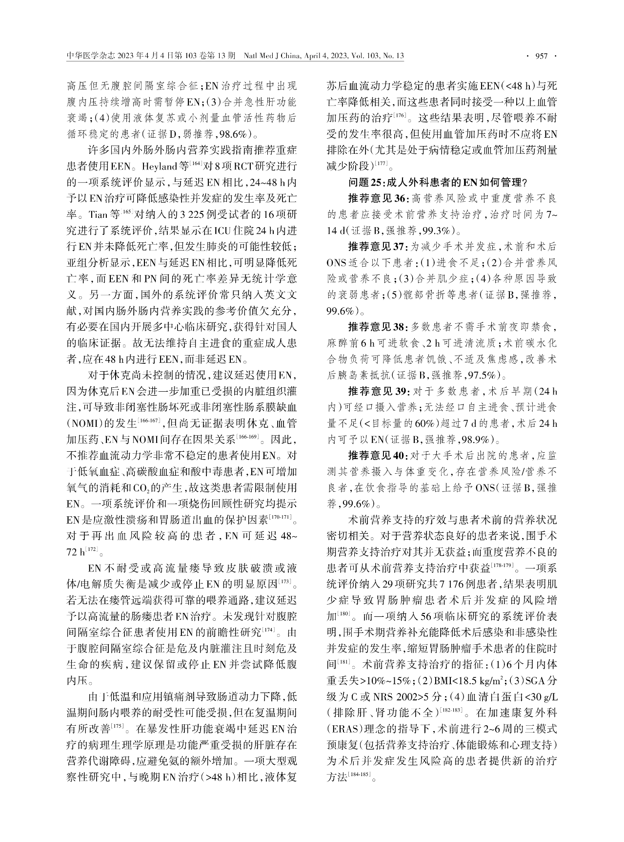 本指南共有37個(gè)問(wèn)題,60條推薦意見(jiàn),4萬(wàn)余字,參考文獻(xiàn)273篇,主要分為營(yíng)養(yǎng)篩查與評(píng)估、腸內(nèi)營(yíng)養(yǎng)、腸外營(yíng)養(yǎng)三大版塊,分別由分會(huì)副主委和北京協(xié)和醫(yī)院陳偉教授、分會(huì)副主委和東部戰(zhàn)區(qū)總醫(yī)院王新穎教授、分會(huì)秘書(shū)長(zhǎng)和北京醫(yī)院朱明煒教授具體負(fù)責(zé),組建各章節(jié)執(zhí)筆團(tuán)隊(duì),經(jīng)十余次集體討論和審稿,并邀請(qǐng)本領(lǐng)域277位國(guó)內(nèi)多學(xué)科專家學(xué)者在線投票最終成稿。本指南的發(fā)布將會(huì)進(jìn)一步規(guī)范腸外腸內(nèi)營(yíng)養(yǎng)臨床診療、讓更多患者獲益,并促進(jìn)我國(guó)臨床營(yíng)養(yǎng)事業(yè)的進(jìn)步與發(fā)展。