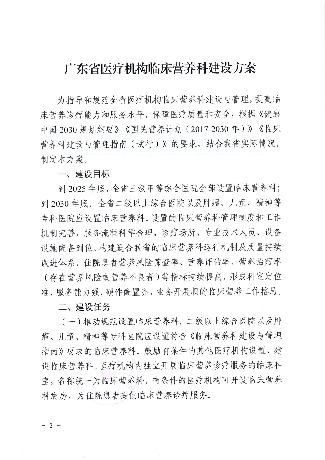 廣東發(fā)布《醫(yī)療機構(gòu)臨床營養(yǎng)科建設(shè)方案》