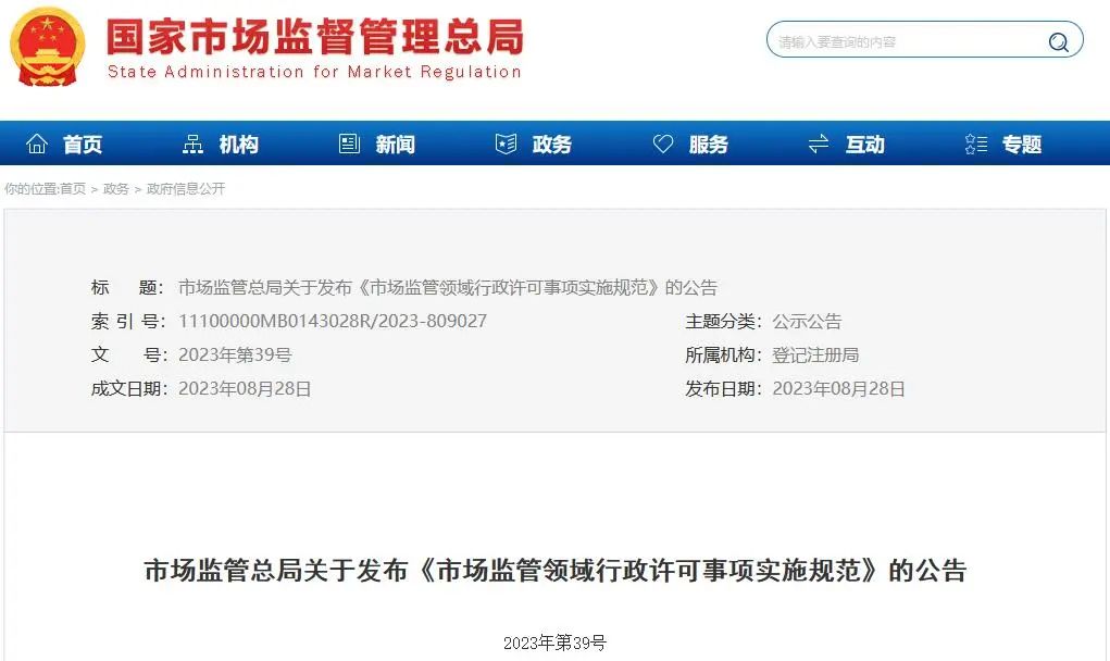 為積極建設(shè)全國(guó)統(tǒng)一大市場(chǎng),持續(xù)優(yōu)化營(yíng)商環(huán)境,深入推進(jìn)行政許可標(biāo)準(zhǔn)化、規(guī)范化、便利化,不斷提高審批效率和監(jiān)管效能,促進(jìn)經(jīng)濟(jì)社會(huì)高質(zhì)量發(fā)展。近日,市場(chǎng)監(jiān)管總局制定出臺(tái)《市場(chǎng)監(jiān)管領(lǐng)域行政許可事項(xiàng)實(shí)施規(guī)范》(以下簡(jiǎn)稱《實(shí)施規(guī)范》)。