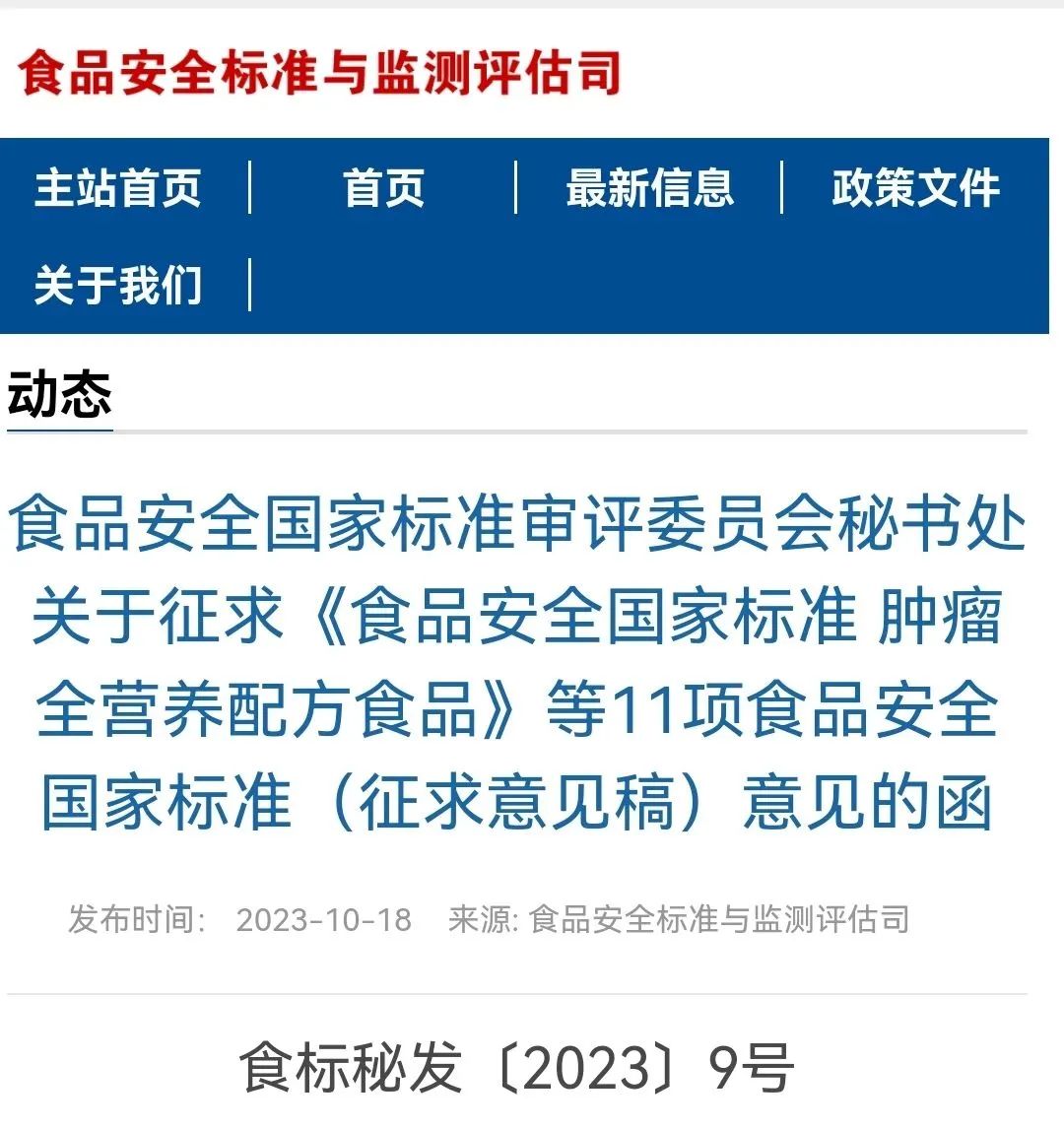 《食品安全國家標(biāo)準(zhǔn) 腫瘤全營養(yǎng)配方食品》等11項(xiàng)食品安全國家標(biāo)準(zhǔn)(征求意見稿)征求意見