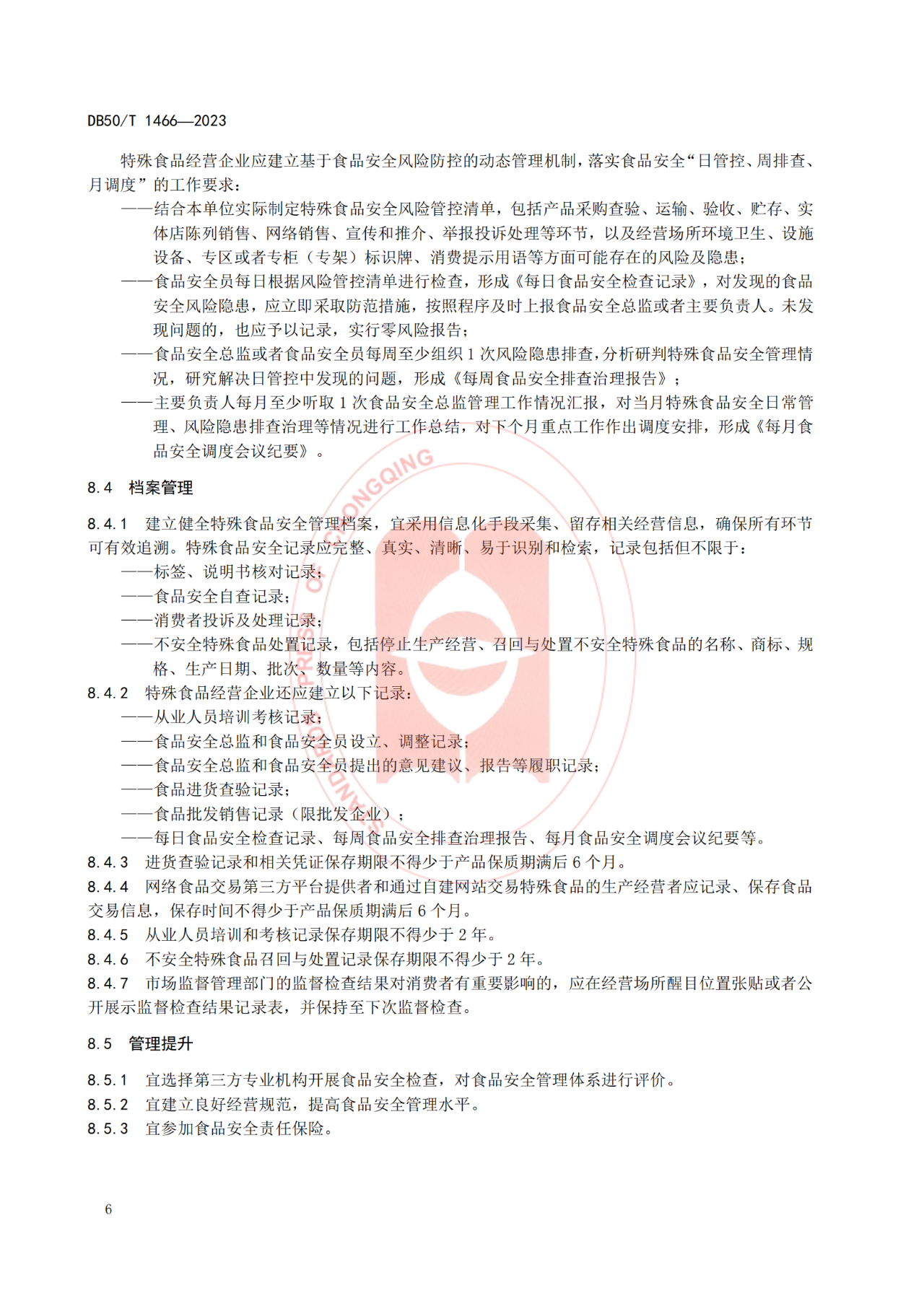 【地方標(biāo)準(zhǔn)】重慶發(fā)布《特殊食品經(jīng)營(yíng)規(guī)范》