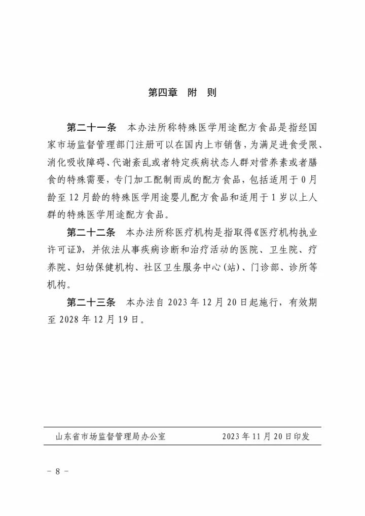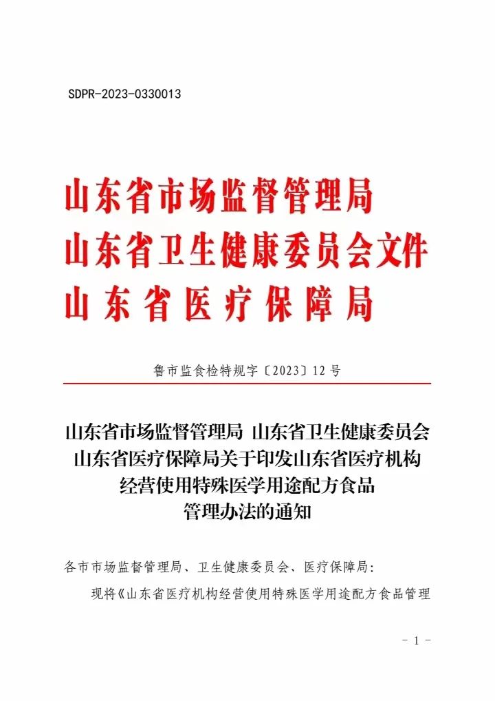 山東三部門聯(lián)發(fā)《醫(yī)療機構(gòu)經(jīng)營使用特醫(yī)食品管理辦法》