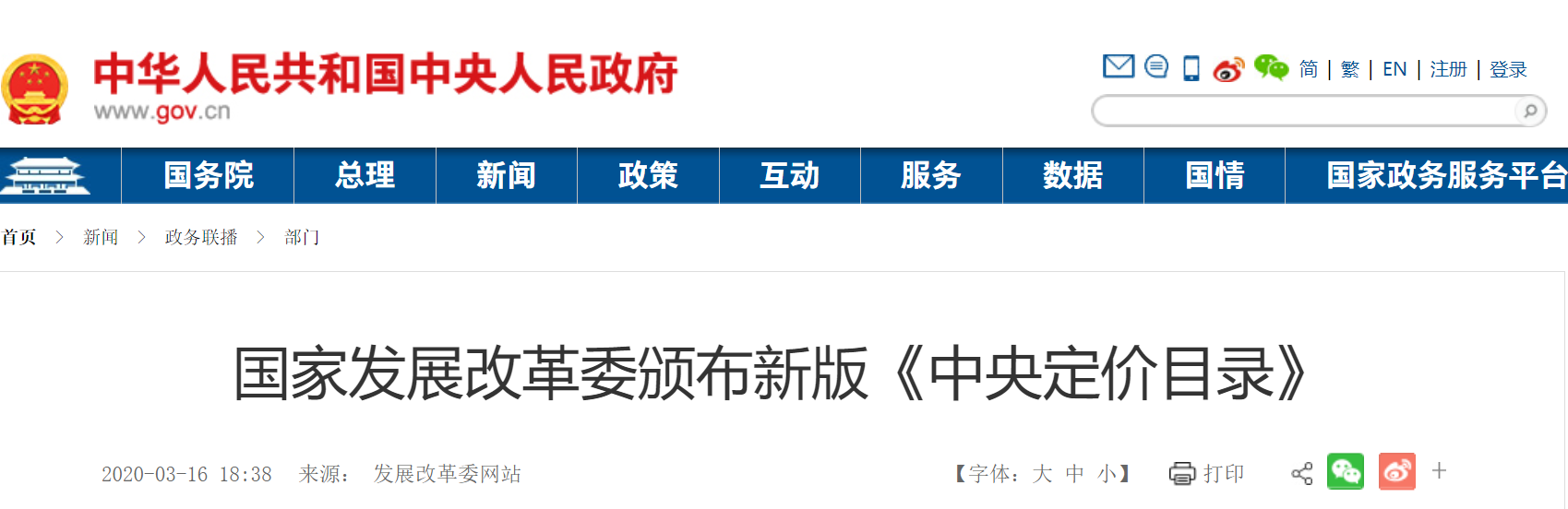 《中央定價(jià)目錄》于 2019年12月18日第5次委務(wù)員會(huì)議審議通過。經(jīng)國(guó)務(wù)院批準(zhǔn),自2020年5月1日起施行。