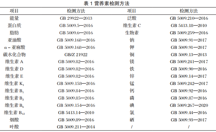 由植物脂肪粉、固體玉米糖漿、乳清蛋白粉、復(fù)合維生素、復(fù)合礦物質(zhì)等通過干法工藝加工制成的、適用于10歲以上需要營(yíng)養(yǎng)補(bǔ)充人群食用的粉狀特殊醫(yī)學(xué)用途全營(yíng)養(yǎng)配方食品?;旌蠙C(jī),秦皇島燕大源達(dá)機(jī)電科技股份有限公司;電子天平,梅特勒-托利多公司;氣相色譜質(zhì)譜聯(lián)用儀、原子吸收光譜儀,賽默飛世爾科技公司;高效液相色譜儀,沃特世科技有限公司;紫外可見分光光度計(jì),島津儀器有限公司;等。