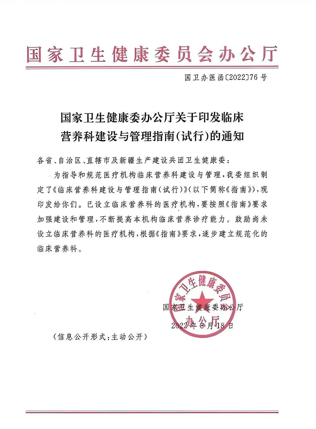 ① 2022年3月18日國家衛(wèi)健委發(fā)布《臨床營養(yǎng)科建設與管理指南》7條建設要求中2條都提到醫(yī)療膳食,以滿足住院全病種的營養(yǎng)膳食需求;