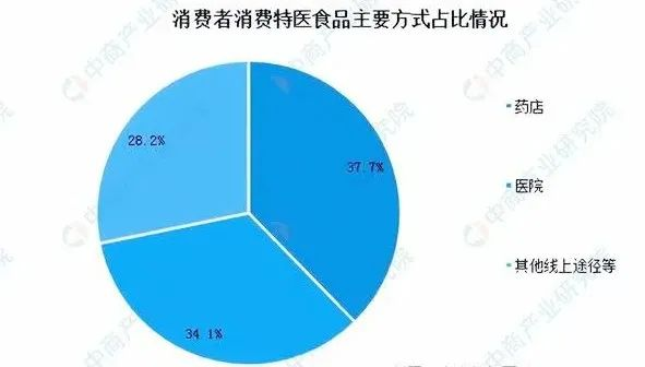 根據(jù)調(diào)研數(shù)據(jù),當(dāng)前消費(fèi)者消費(fèi)特醫(yī)食品主要方式,占比位居前列的仍舊是傳統(tǒng)的藥店、醫(yī)院等渠道,兩者占比達(dá)到71.8%。而線上場(chǎng)景如線上藥店、零售電商平臺(tái)等消費(fèi)接受程度已接近線下醫(yī)院。