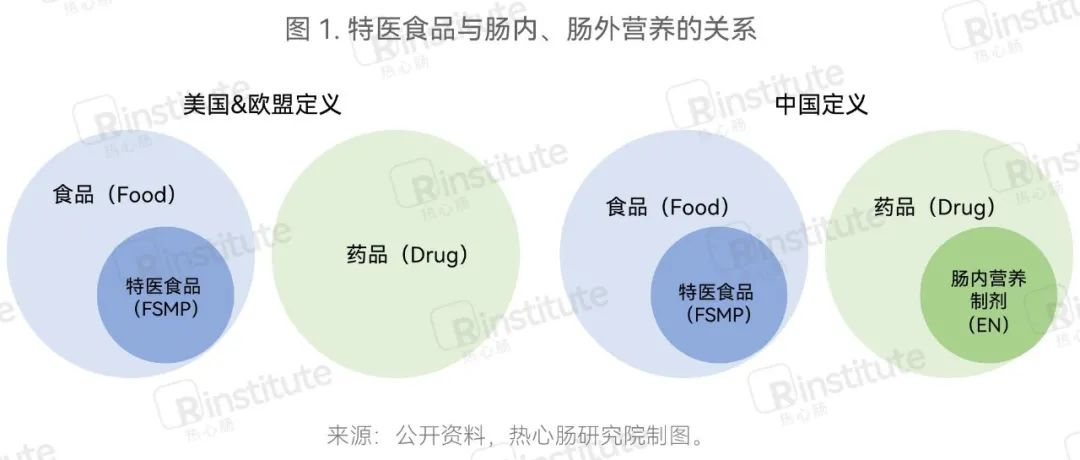 因此,在歐美僅有包含腸內營養(yǎng)制劑的特醫(yī)食品,而我國特醫(yī)食品產業(yè)則是由以特殊食品身份流通的特醫(yī)食品和以藥品身份流通的腸內營養(yǎng)制劑共同構成。