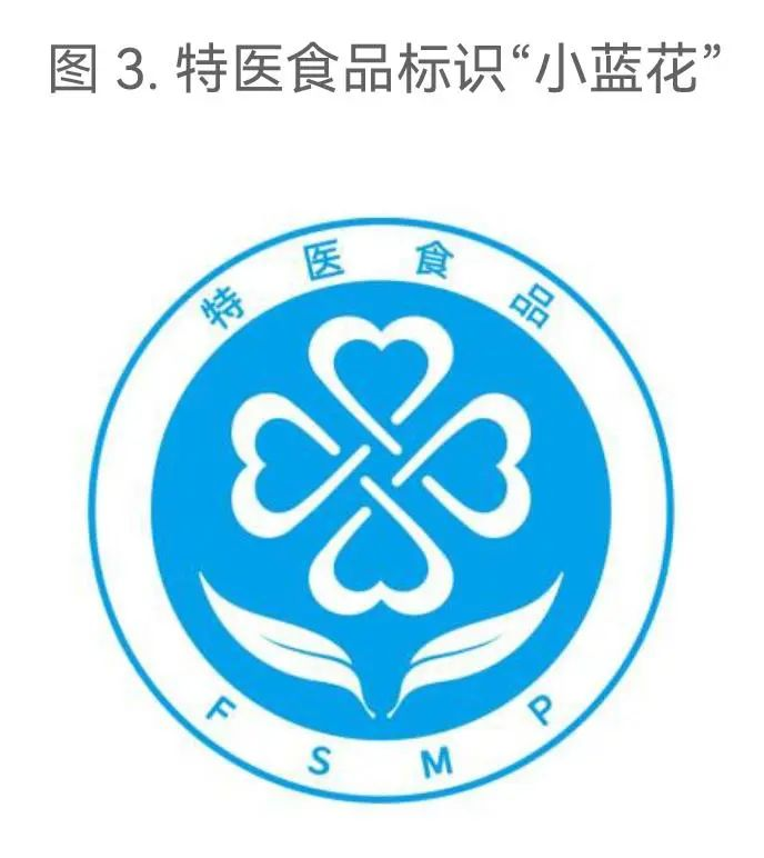 2016年3月10日,國家食品藥品監(jiān)督管理總局正式公布了《特殊醫(yī)學用途配方食品注冊管理方法》,并從2016年7月1日起實施。自此,特醫(yī)食品的生產及應用步入了發(fā)展期,產業(yè)迎來發(fā)展新機。目前,我國采取的是最嚴格的特醫(yī)食品注冊審批辦法。2019年7月1日后,特醫(yī)食品都需要經(jīng)過注冊審批才能進入市場。除了腸外營養(yǎng)支持和靜脈注射類產品,以往通過藥品途徑注冊的產品均需要重新注冊為特醫(yī)食品,同時會失去藥品和醫(yī)保身份。2022年,我國市場監(jiān)管總局出臺《特殊醫(yī)學用途配方食品指南》,并推出了“小藍花”標識(圖3)。