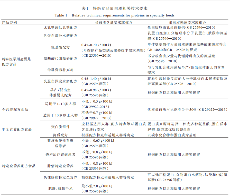 ( 不同類別特醫(yī)食品蛋白質(zhì)相關(guān)技術(shù)要求見表1)