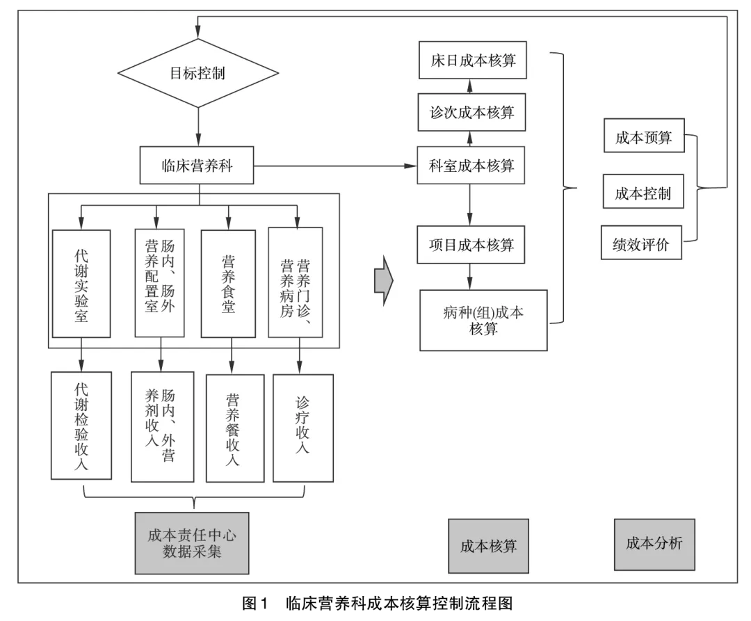 我國臨床營養(yǎng)學(xué)科自20世紀(jì)70年代起步,經(jīng)過50年發(fā)展,取得了長足的進(jìn)步。營養(yǎng)支持與醫(yī)療、護(hù)理并稱臨床治療的三大重要環(huán)節(jié)。在疾病的發(fā)生、發(fā)展和轉(zhuǎn)歸全過程中,營養(yǎng)支持成為治療疾病的重要基礎(chǔ)保障??茖W(xué)合理的營養(yǎng)支持能夠提高治愈率,減少并發(fā)癥,促進(jìn)患者盡早康復(fù),提高醫(yī)療資源的使用效率,節(jié)約醫(yī)療成本[1]。國家衛(wèi)生主管部門自 2009年起,頒布過多版《臨床營養(yǎng)科建設(shè)和管理指南》。最新版是國家衛(wèi)健委 2022年3月發(fā)布的《臨床營養(yǎng)科建設(shè)和管理指南(試行)》(以下簡稱《指南》),要求二級以上綜合醫(yī)院以及腫瘤、兒童、精神等??漆t(yī)院設(shè)置臨床營養(yǎng)科,不斷推進(jìn)學(xué)科發(fā)展?!丁敖】抵袊?030”規(guī)劃綱要》和《國民營養(yǎng)計(jì)劃(2017—2030年)》對提高國民營養(yǎng)健康水平作出了規(guī)劃。該規(guī)劃把臨床營養(yǎng)行動定為六個重大行動之一,突出了開展臨床營養(yǎng)在實(shí)現(xiàn)健康中國目標(biāo)中的重要性[2]2020年《關(guān)于加強(qiáng)公立醫(yī)院運(yùn)營管理的指導(dǎo)意見》要求公立醫(yī)院要以全面預(yù)算管理和業(yè)務(wù)流程管理為核心,以全成本管理和績效管理為工具,對醫(yī)院內(nèi)部運(yùn)營資源進(jìn)行科學(xué)配置、精細(xì)管理和有效使用,有效提升運(yùn)營管理效益。本研究探討了臨床營養(yǎng)科成本核算管理,以助推該科室建設(shè)和發(fā)展。